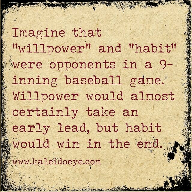 After having a conversation with a friend the other day and some contemplation, I wanted to share this quote that I believe sums up one foundational aspect of change. Willpower is something that is limited. We only have so much… and it isn’t a matter of if you’ll be in a situation where it is running low, but when. Willpower is a great tool; however, if you are looking to make a lasting change in life, look to change your habits instead.