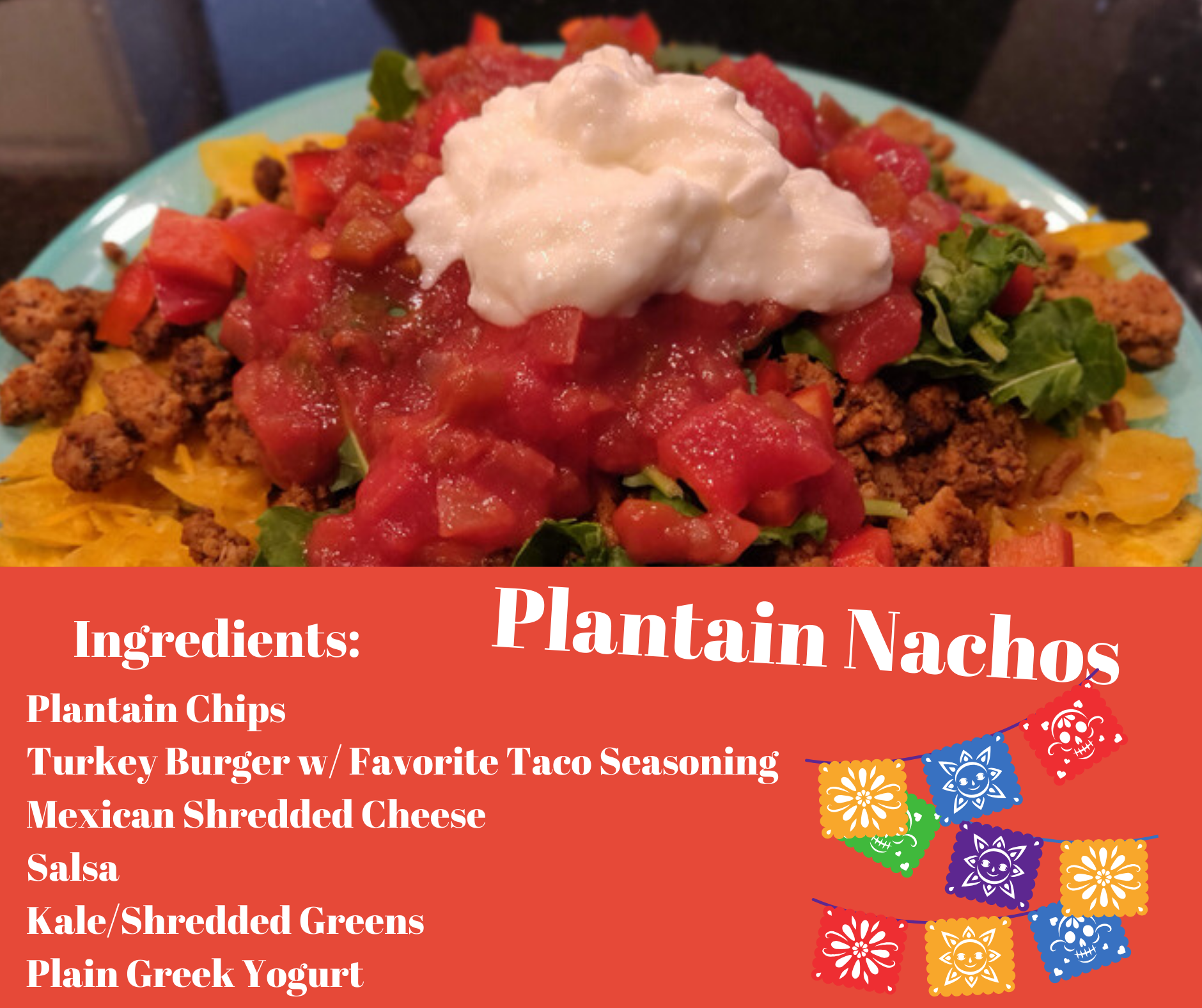 Favorite appetizer? Nachos have to be up there right? These are an awesome substitute- plantain chips (by Mexican food or chips) have a variety of tastes. My favorite brand- Terra. They have the right amount of salt and the plantain taste is not overwhelming. Add ground turkey, cheese, healthy nachos fixings, and top with plain Greek yogurt as a sub for sour cream, and you are set to enjoy! If you’ve been following me for awhile, you’ve seen this recipe before! I keep sharing it because it’s a keeper!
