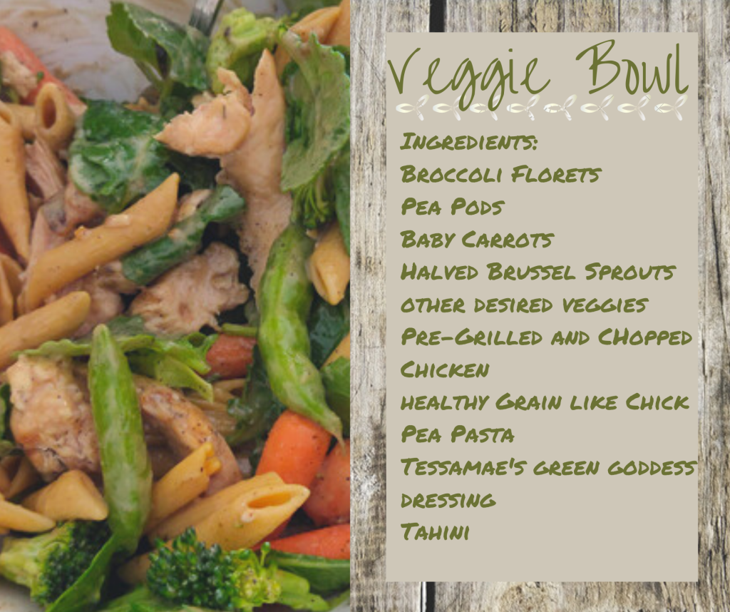 Add chopped protein, a healthy grain, clean salad dressing (Tessamae is my favorite), and a fat if desired (avocado, tahini, ghee, etc), and you have a simple, well-balanced, and delicious meal in minutes (less if you have two hands!).