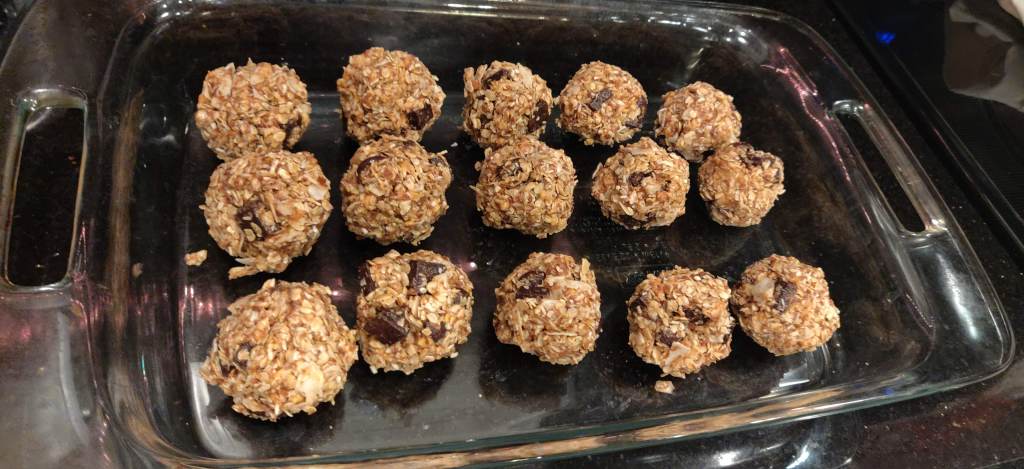 **If your mixture is very sticky, add more oats or chill mixture in the fridge for 30 minutes and then roll into bites.