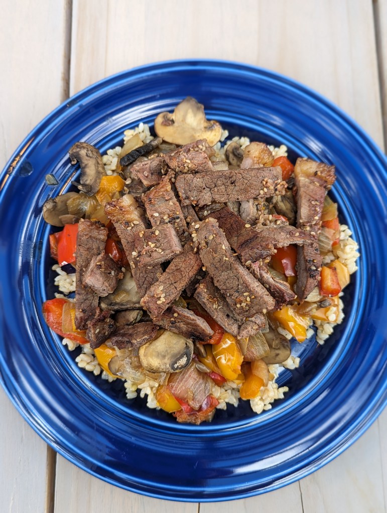 - Place flank steak slices in a shallow dish. Pour marinade over top. Cover and refrigerate for at least 1 hour or overnight.